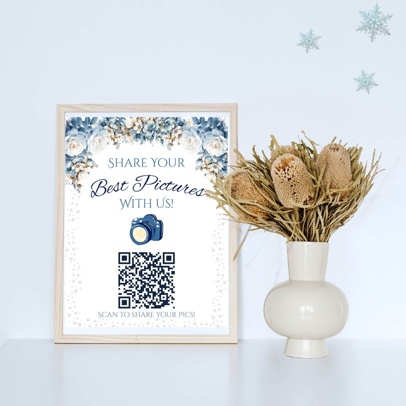Winter Wonderland Photo Upload Sign with QR Code (Editable Template)