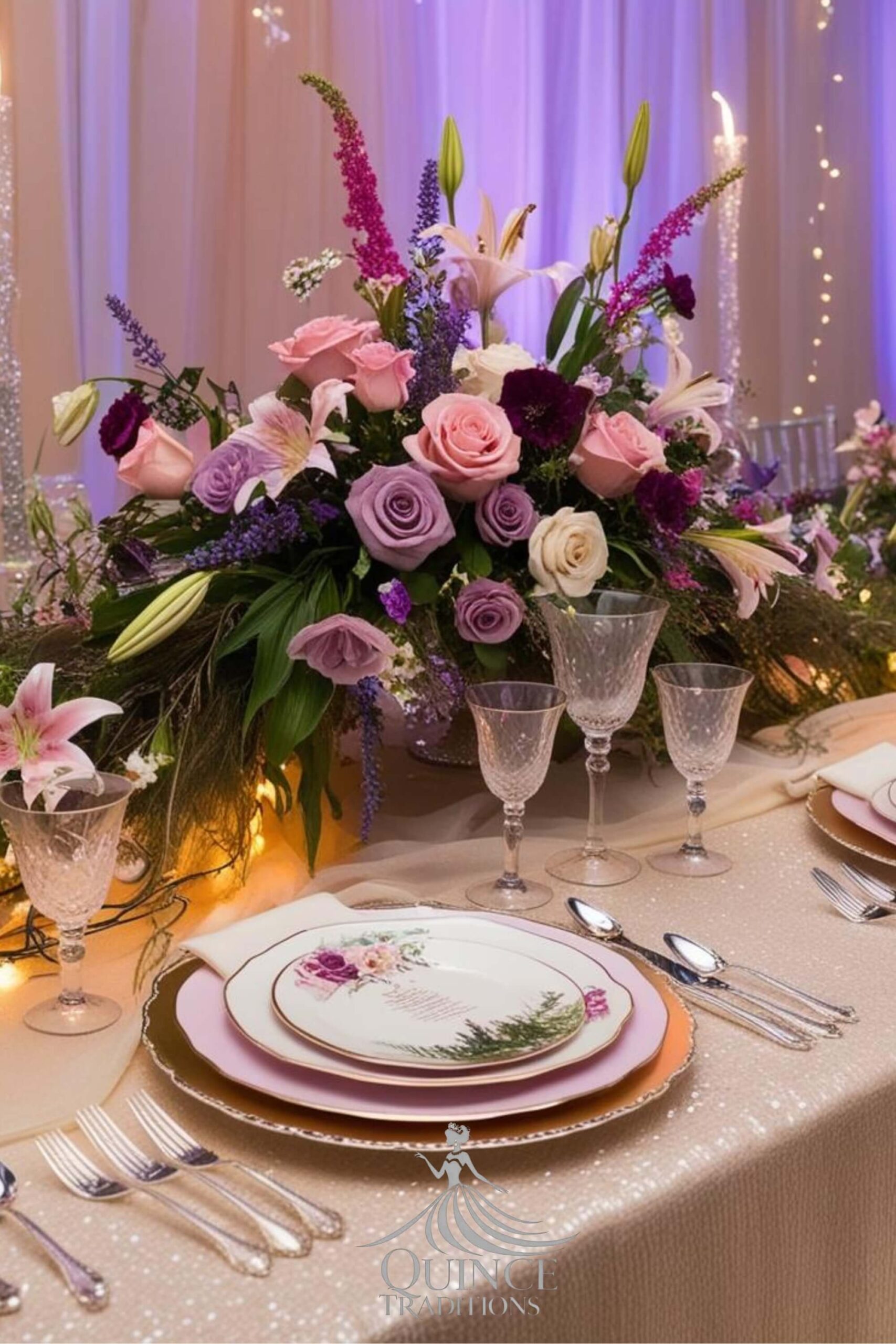 Bring the magic of the forest to your quinceañera with lush greenery, whimsical décor, and fairytale-inspired details. Imagine mossy centerpieces, twinkling lights, and floral accents that create a dreamy woodland setting. From the flowing gown to nature inspired cake designs, every detail evokes enchantment.
