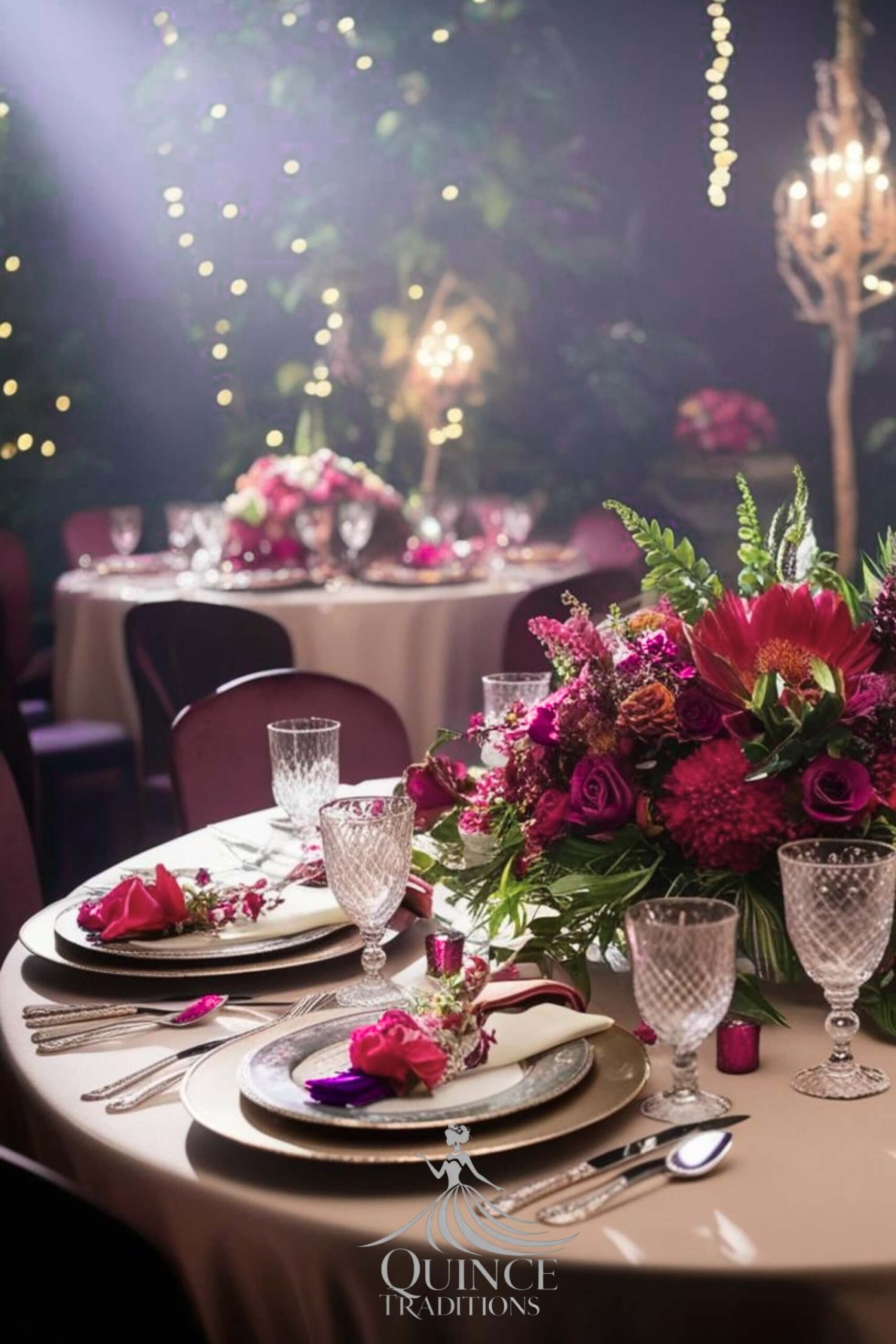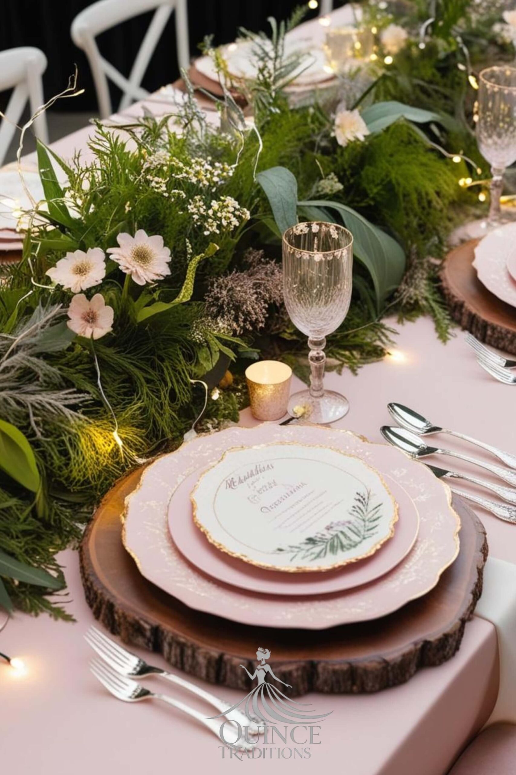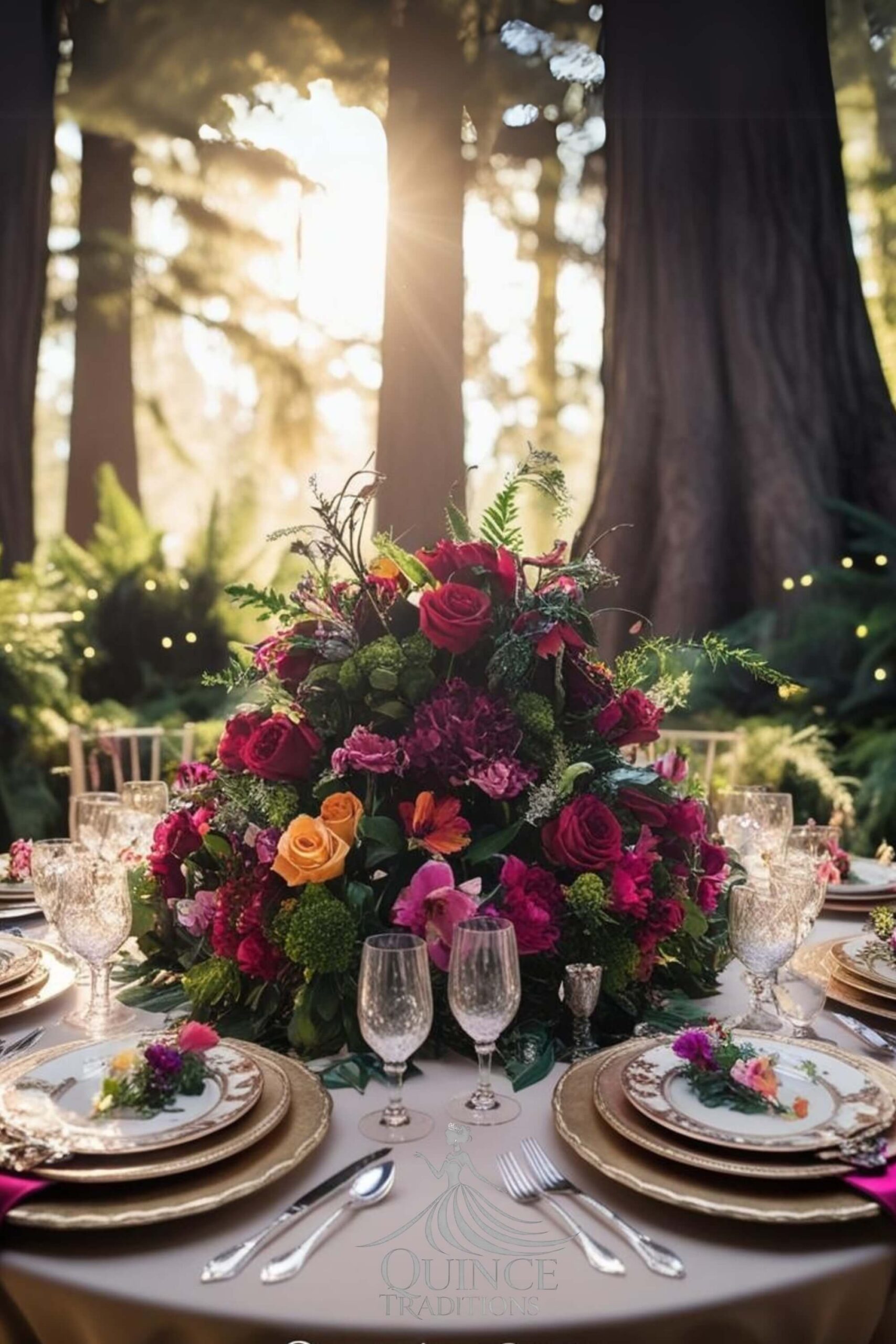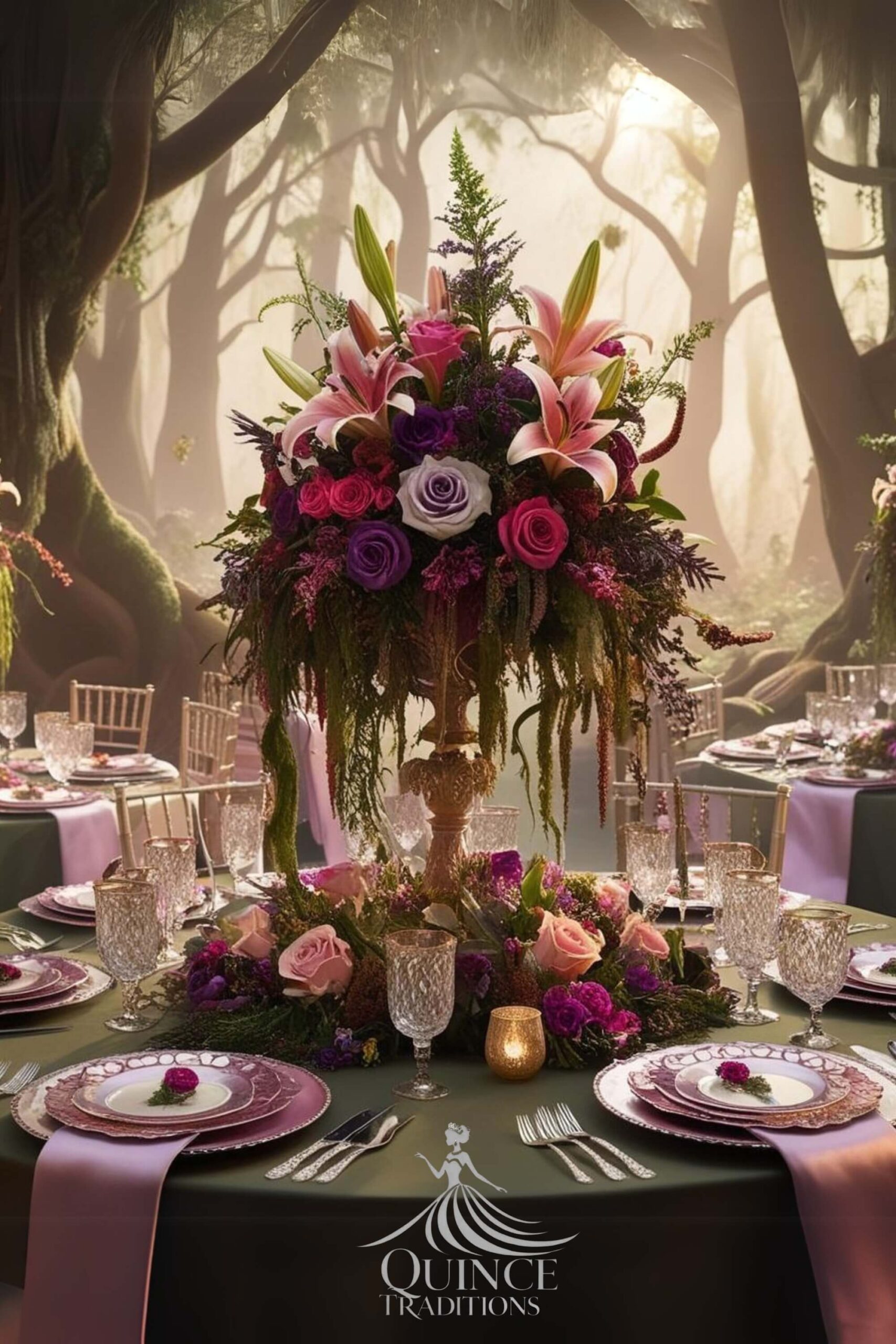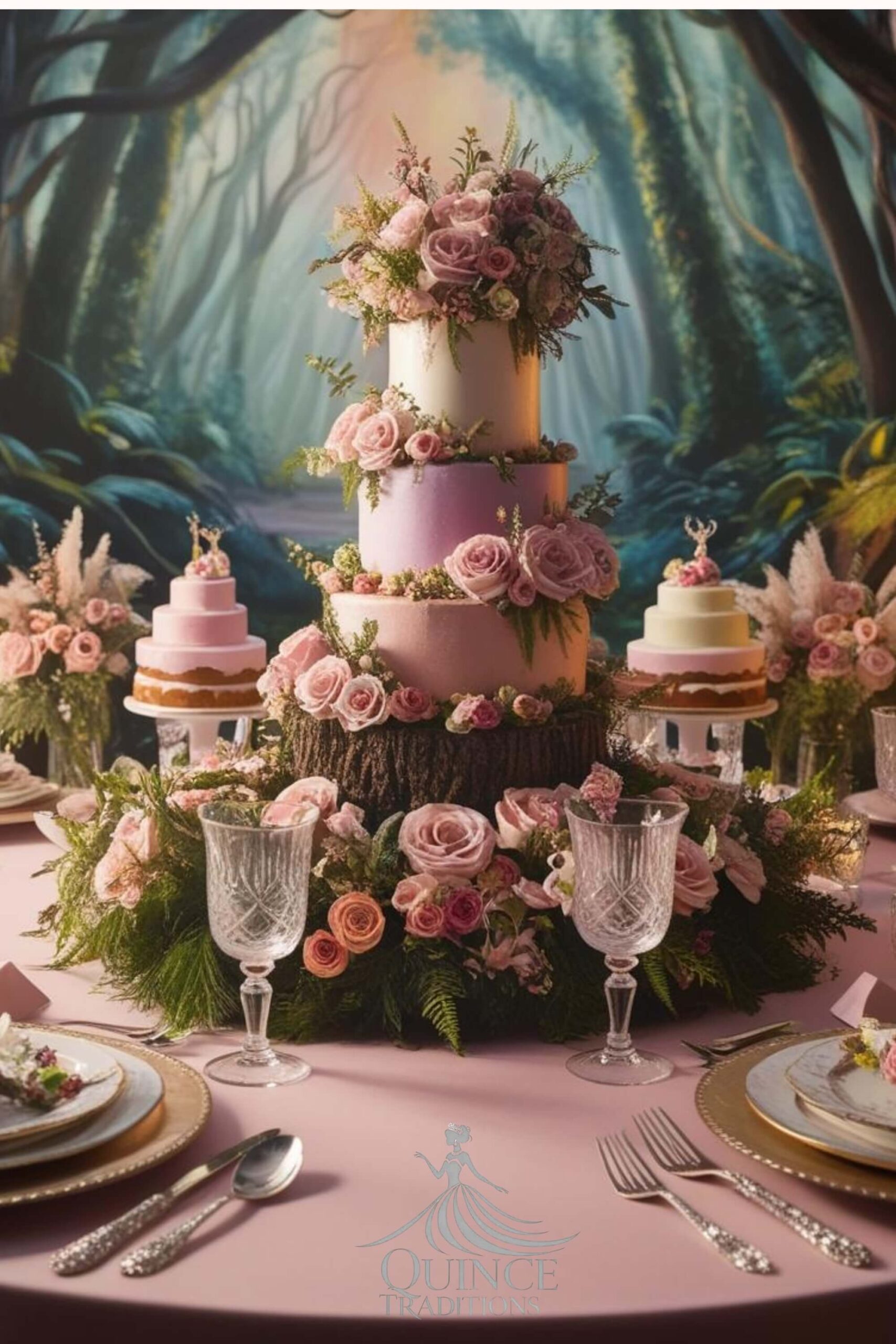 A magical quinceañera theme inspired by lush greenery, woodland charm, and whimsical details.