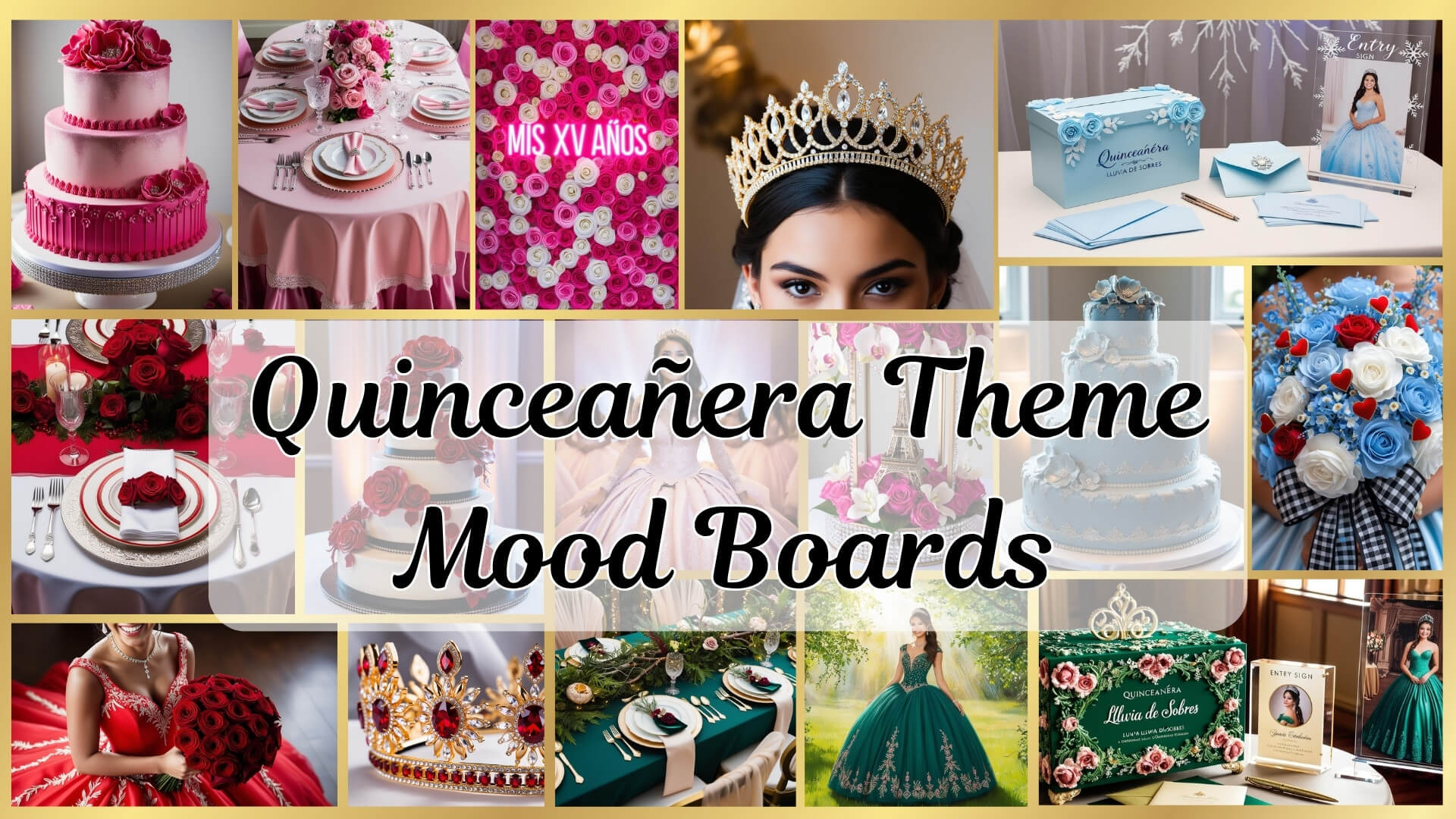 Our Visual Quinceañera Theme Mood Boards will continue to be updated, and more Quinceañera Themes will continue to be added. Check back soon, or join our Quince Traditions Family to stay updated about new themes, freebies, digital products, blogs, and more!